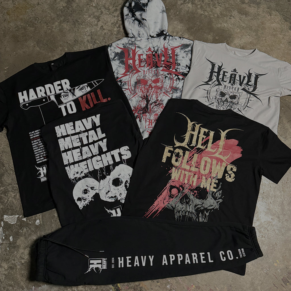 Built by two creators obsessed with quality, Heavy Apparel Co. crafts custom cut & sew pieces with zero compromise. Inspired by heavy metal and gym culture, but made for anyone who lives with purpose, intensity, and grit.